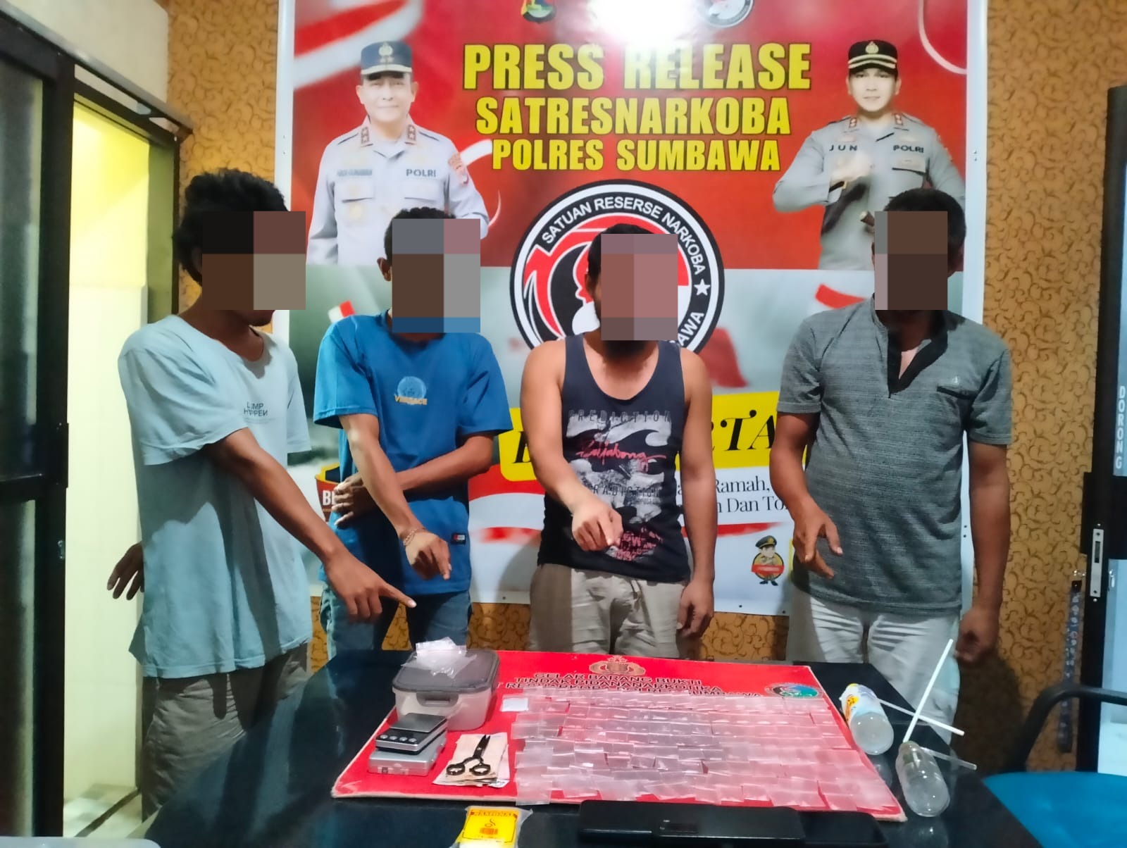 Kegiatan tersebut dipimpin langsung oleh Kapolsek Empang AKP Nakmin, dimana dalam kegiatan itu petugas gabungan turut berhasil mengamankan 4 orang pria terduga pelaku tindak pidana penyalahgunaan narkotika jenis sabu.