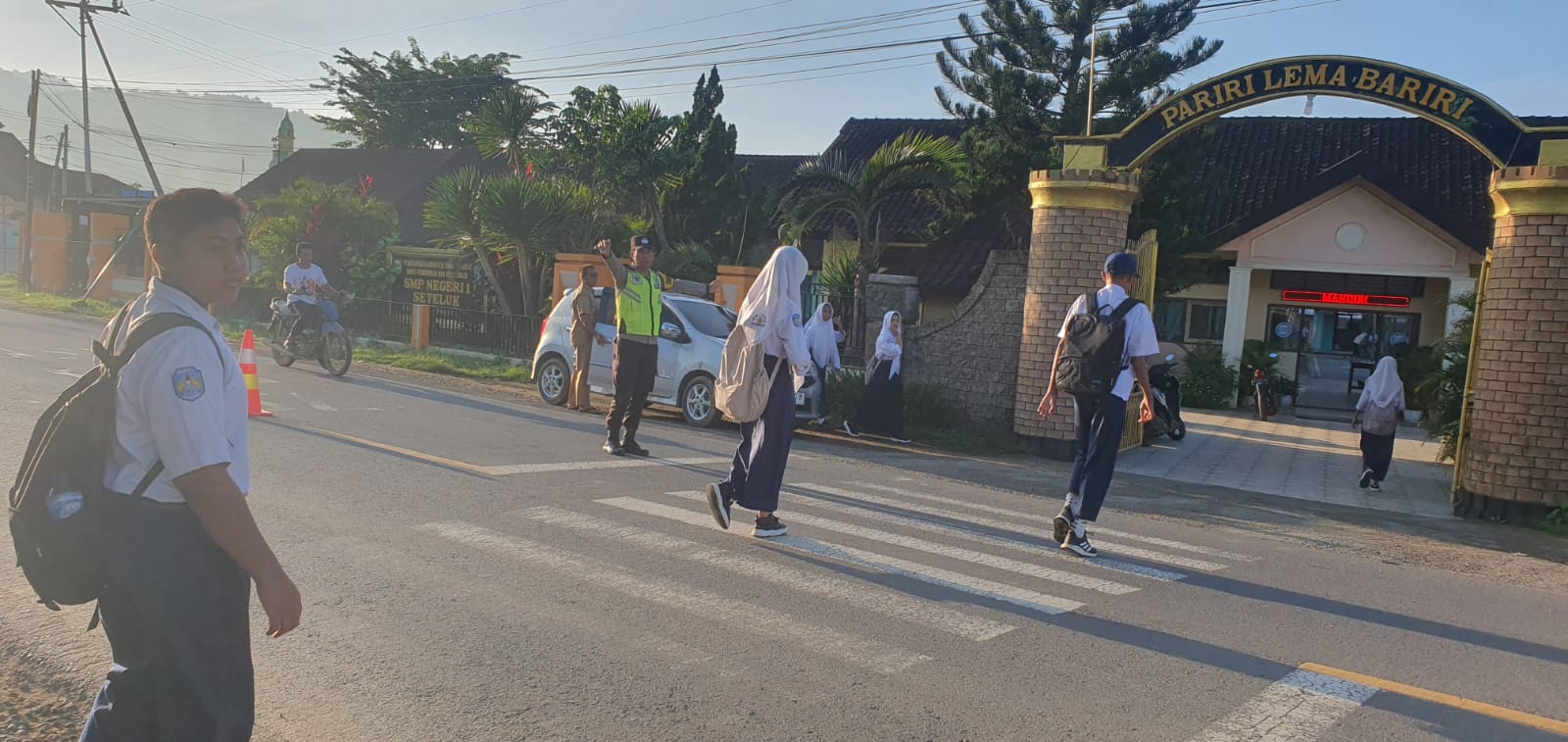 Sumbawa Barat NTB – Untuk memberikan rasa aman terhadap masyarakat khususnya kepada siswa/i yang akan masuk sekolah, anggota Polsek Seteluk Polres Sumbawa Barat melakukan penggelaran anggota di jalan raya ( Strong Point) depan SMPN 1 Seteluk, Selasa (07/01/2025).