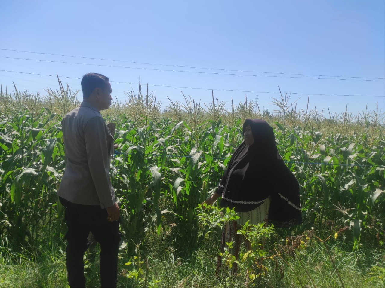 Sumbawa Besar–NTB, Bhabinkamtibmas Desa Rhee Loka kembali menunjukkan komitmennya dalam mendukung program ketahanan pangan nasional dengan melakukan pengecekan lahan pertanian milik Sdri. Nurma yang ditanami jagung di Desa Rhee Loka, Kecamatan Rhee, pada Jumat, 20 Juni 2025, pukul 11.20 WITA.