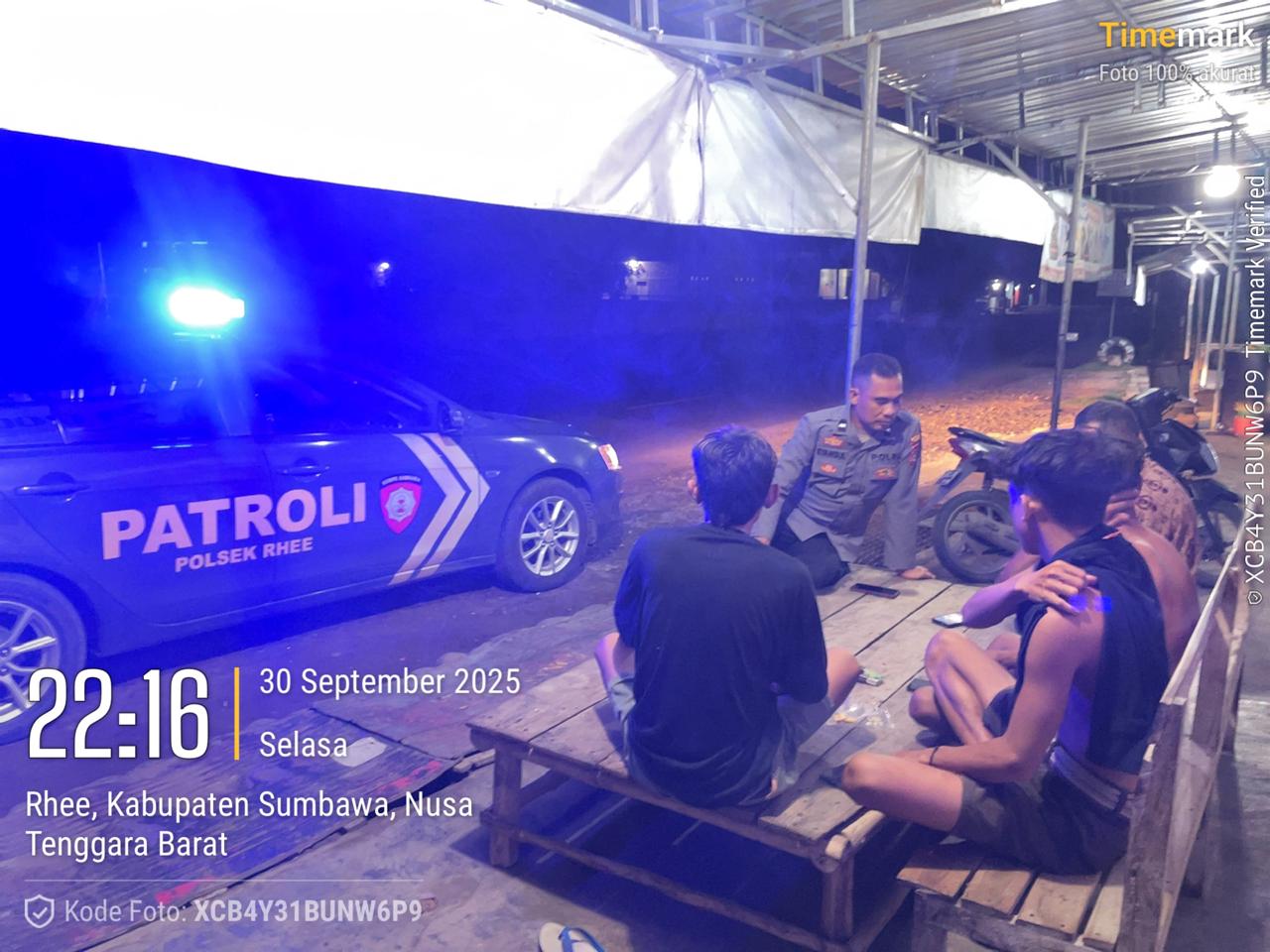 Sumbawa Besar, NTB — Kepolisian Sektor (Polsek) Rhee, di bawah jajaran Polres Sumbawa, intensif melakukan upaya pencegahan gangguan keamanan dan ketertiban masyarakat (Kamtibmas) melalui Kegiatan Rutin yang Ditingkatkan (KRYD) dan Patroli Blue Light pada Selasa malam, 30 September 2025.